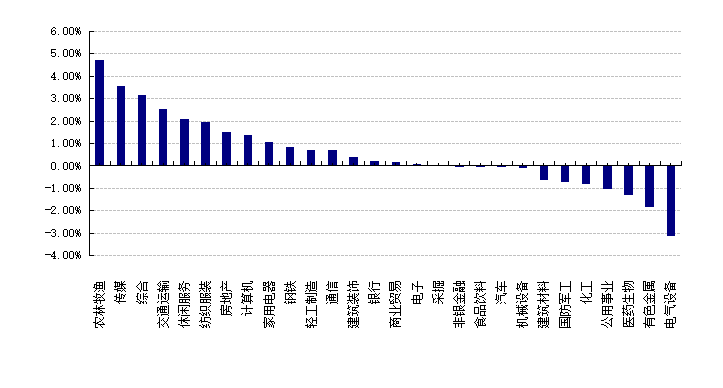 昨日,沪深两市双双收跌。截止收盘,上证综指收于3632.33点,跌7.45点,跌幅为0.20%;深成指收于14791.31点,跌66.03点,跌幅为0.44%;沪深300收于4917.77点,跌22.61点,跌幅为0.46%;创业板收于3250.16点,跌72.51点,跌幅为2.18%。两市成交12663.24亿元,较前一日交易量增加19.44%。小盘股强于大盘股。中证100下跌0.28%,中证500下跌0.07%。28个申万一级行业中有16个行业上涨。其中,农林牧渔、传媒、综合表现居前,涨跌幅分别为4.73%、3.57%、3.18%,医药生物、有色金属、电气设备表现居后,涨跌幅分别为-1.30%、-1.84%、-3.14%。沪市有1228只个数上涨,占比70.17%,深市有1884只个数上涨,占比75.30%。
