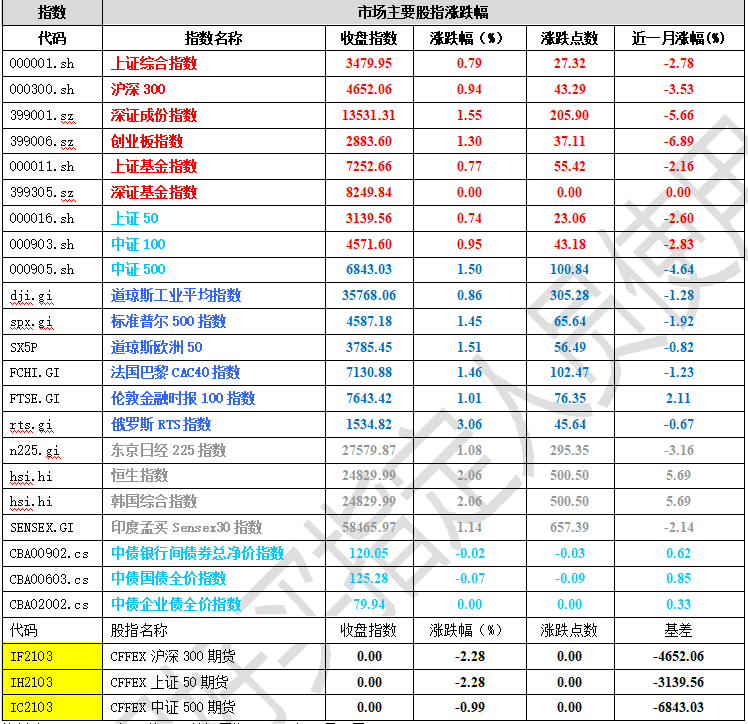 二、指数涨跌