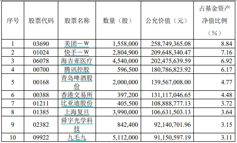 二季报显示,陈皓在二季度大举增持了快手,快手也晋升易方达港股通成长的第二大重仓股,青岛啤酒股份、比亚迪股份、舜宇光学科技新进前十大重仓股,贵州茅台、中国海外发展、赣锋锂业退出前十大重仓股。