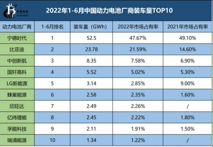 数据来源:中国汽车动力电池产业创新联盟 时间:2022/1-2022/6