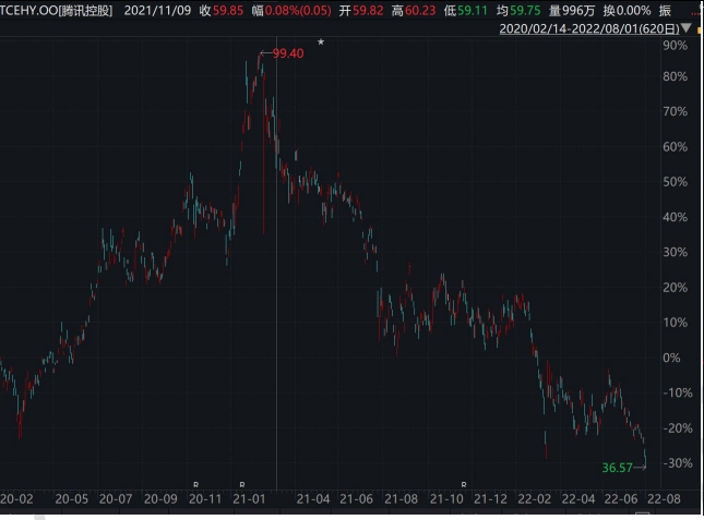 相比一年多前腾讯股价历史高峰,目前回撤近 60%+,市值蒸发超 4.3 万亿港元。Wind 数据统计,6 月 28日至 7 月 14 日 12 个交易日间,腾讯累计回购 1037 万股。同时,南向资金也在大举“扫货”。Wind 统计数据显示,近一个月来,腾讯居于南向资金净买入第一位,累计净买入百亿港元。