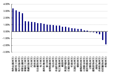 昨日,沪深两市双双收涨。截止收盘,上证综指收于3310.74点,涨38.37点,涨幅为1.17%;深成指收于11178.62点,涨172.98点,涨幅为1.57%;沪深300收于3998.89点,涨61.13点,涨幅为1.55%;创业板收于2299.93点,涨47.55点,涨幅为2.11%。两市成交9382.76亿元,。大盘股强于小盘股。中证100上涨1.59%,中证500上涨1.11%。31个申万一级行业中有25个行业上涨。其中,有色金属(申万)、国防军工(申万)、电力设备(申万)表现居前,涨跌幅分别为3.39%、3.12%、2.90%,农林牧渔(申万)、纺织服饰(申万)、传媒(申万)表现居后,涨跌幅分别为-0.38%、-1.23%、-1.85%。沪市有1446只个数上涨,占比73.22%,深市有1883只个数上涨,占比68.45%。非ST个股中,12只个股涨停,10只个股跌停。股指期货主力合约3个合约均上涨,其中,0只期指好于现货指数。