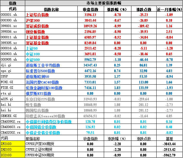 二、指数涨跌