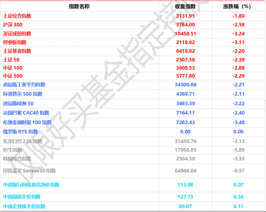 上周,欧美主要市场普遍下跌,其中,道指下跌2.21%,标普500下跌2.11%;道琼斯欧洲50 下跌2.22%。亚太主要市场普遍下跌,其中,恒生指数下跌5.89%,日经225指数下跌3.15%。