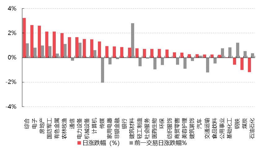 ▼申万一级行业涨跌幅