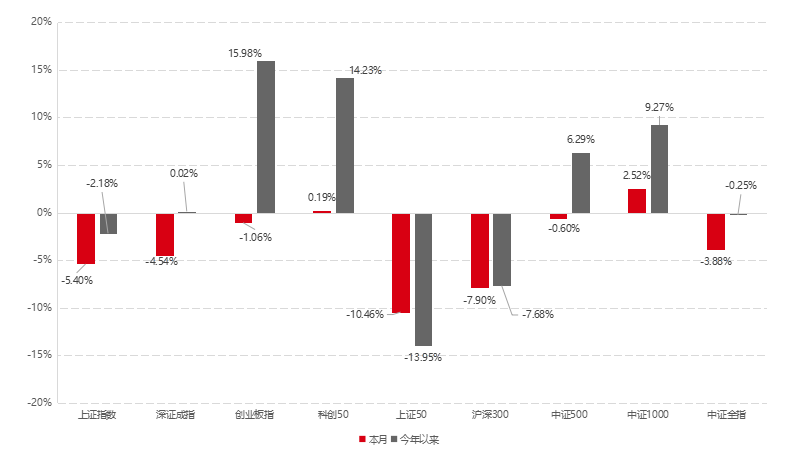 全年看,中证全指不涨不跌,结构性行情深度演绎:双创板块大幅领涨,创业板指已斩获16%涨幅,中证1000也录得9个点涨幅,中证500上涨6.29%,而沪深300下跌7.68%,上证50重挫15%。