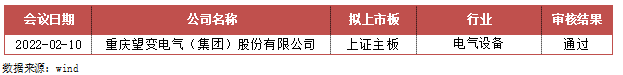 2022年2月11日,证监会第十八届发审委2022年第13次会议于昨日召开,审议结果显示,重庆望变电气(集团)股份有限公司(简称“望变电气”)首发获通过。这是今年过会的第31家企业。