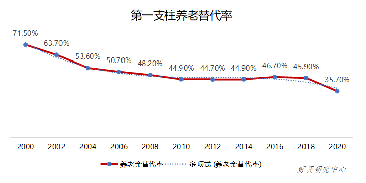 我国养老保障体系以第一支柱为主,第二、三支柱规模较小,其中第三支柱规模占比不足1%,以欧美国家第三支柱规模占比15-30%作为参考,中国第三支柱占比过低,其市场潜力较大。同时,我国第一支柱覆盖人员广,且社保基金由劳动群体补充,发放至退休养老群体,因此在老龄化社会中第一支柱存在潜在的资金缺口,负担较大。定义养老替代率为退休后收入与退休前收入之比,社保养老替代率为社保养老金与退休前收入之比,可以看出虽然社保养老金逐年增长,社保养老替代率逐年降低(2020年社保养老替代率仅为35.7%)。依据国际标准,养老替代率应至少达到60%,理想达到70-80%,因此仅仅依赖第一支柱养老将严重影响养老的生活品质,第三支柱亟待发展。