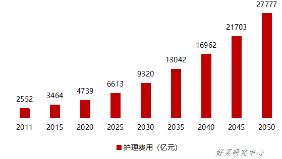 社会老龄化加剧,政府将承担更大规模的失能护理需求,目前护理服务供给仍存在缺口。据统计,2020年我国养老床位需求为1315万张,而养老机构仅可提供757万张养老床位。我国鉴定合格的养老护理人员仅有44102人,而全国中度/重度失能的老年群体约4063万人,按失能老人与护理人员为3:1配比,我国仍需要1300万护理人员,缺口巨大。同时,老年群体购买护理服务意愿偏低,无法满足实际的护理需求:中度失能老人愿意购买护理服务的比例为32.1%,每月费用中位数2000元,支付意愿金额1800元;重度失能老人愿意购买护理服务的比例为34%,每月费用中位数4532元,支付意愿金额2000元。