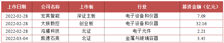 上周,共有4家企业上市,总融资金额44.91亿人民币,深交所创业板1家、深交所主板1家、北交所2家。