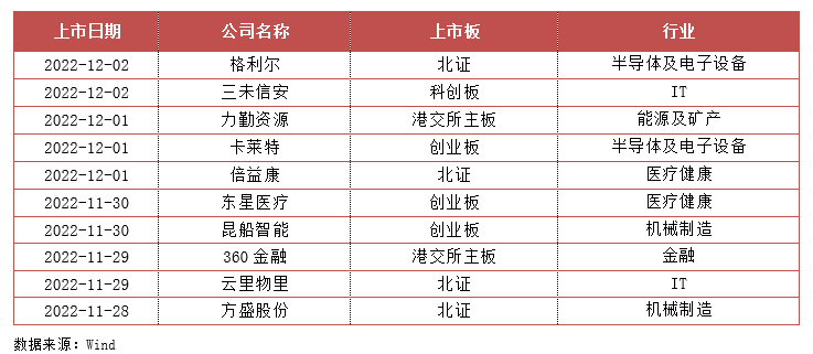 上周,共有10家企业上市,总融资金额94亿元人民币,其中,上交所科创板1家、深交所创业板3家、北交所4家、港交所主板2家。