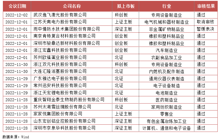 上周,共有17家企业经发审会审核,15家通过审核,1家暂缓表决,1家取消审核。