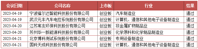 上周,共6家企业经发审会审核,其中6家通过审核。