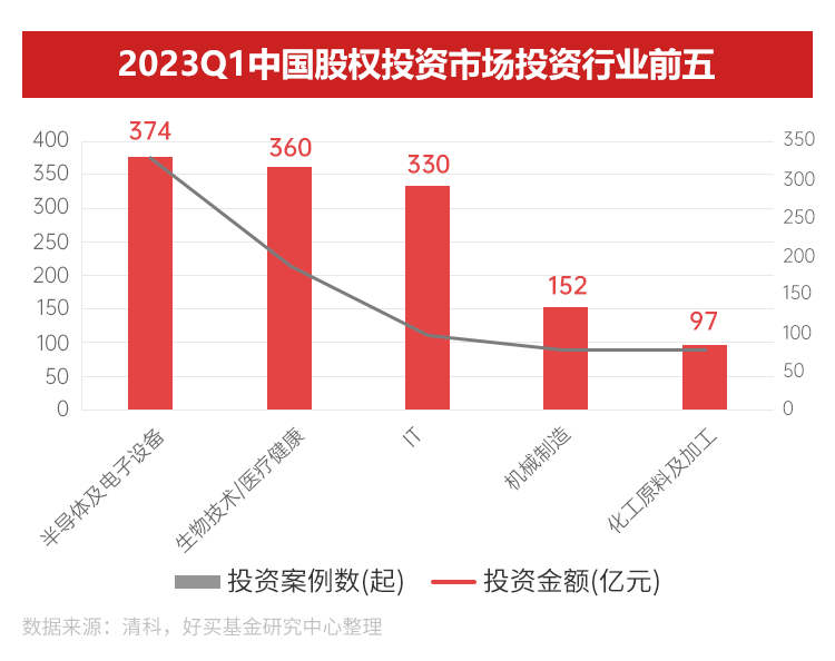 结构上,一季度市场资源持续向硬科技产业倾斜,投资案例主要集中在半导体及电子设备、生物技术/医疗健康与IT领域,三大行业共发生投资案例数1,064起(61.8%);涉及投资金额610.56亿元人民币(47.0%),均保持在较高水平。