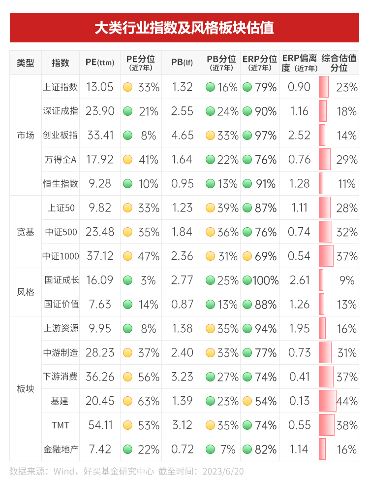 1.近期股市流动性偏弱,新增资金不多,6月中旬稍有改善;国内权益市场估值下调明显,股权风险溢价重新进入较有吸引力的区间。当前市场已经较为充分的计入了各项悲观预期,往后看机会大于风险,建议对权益类基金保持中高仓位。