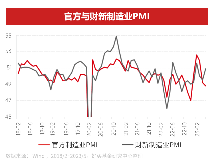 一方面,5月官方制造业PMI为48.8,较23Q1走弱,但5月财新制造业PMI仍在50.9的荣枯线上,表明当前的复苏在结构上不均衡;此外,官方非制造业PMI和财新中国服务业PMI今年来多保持在55附近,高于制造业PMI水平,表明非制造业的修复进程优于制造业。