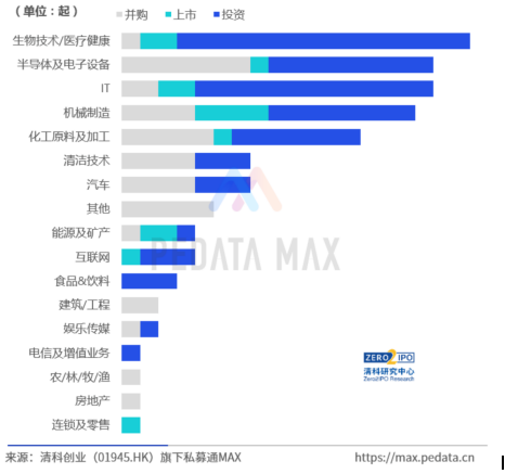 上周,生物技术/医疗健康、半导体及电子设备、IT的投资事件较多。