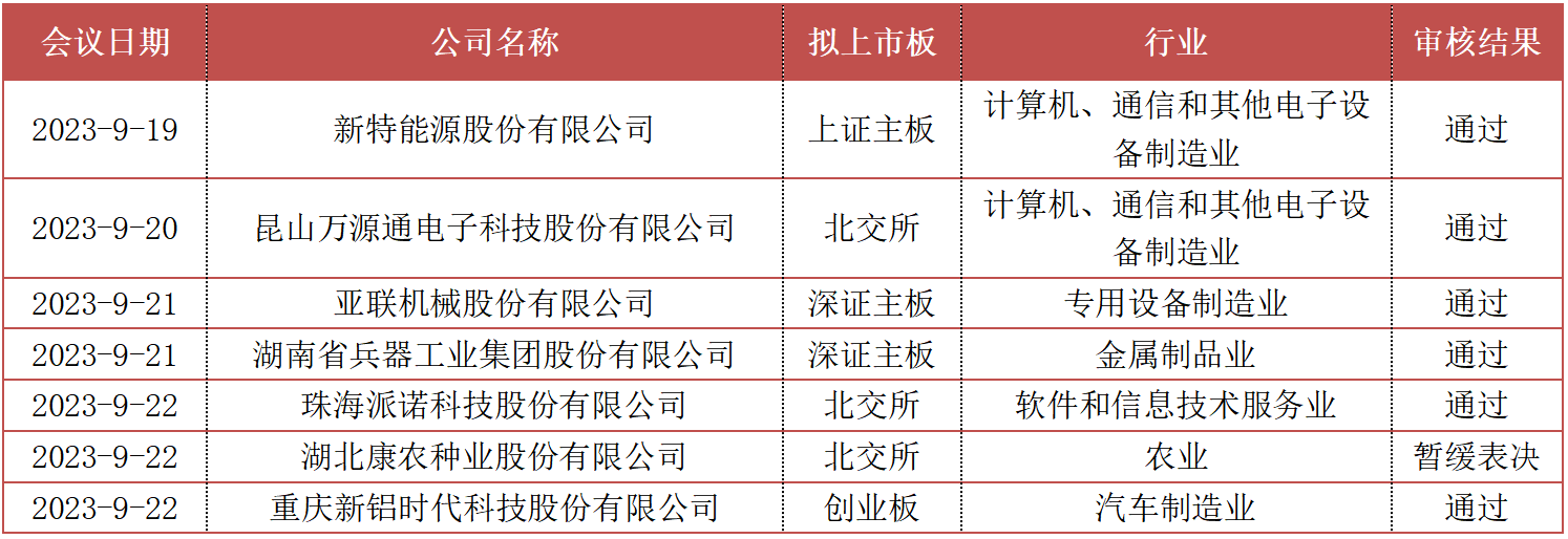 上周,共有7家企业经发审会审核,6家通过审核,1家暂缓表决。