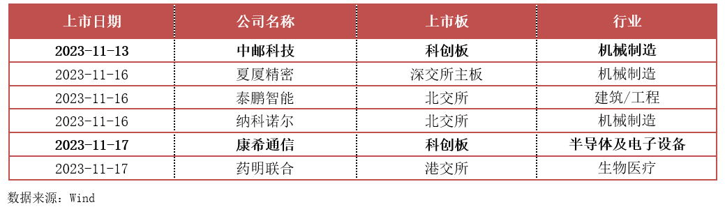 上周,共有6家企业上市,总融资金额58.03亿元人民币,其中,上交所科创板2家、深交所主板1家、北交所2家、港交所1家。