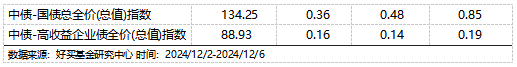 债市行情方面,在配置需求和充裕流动性的推动下,上周债券收益率全面下行。由于近期央行购债,叠加同业存款利率下降,相当于市场对“降准降息”进行交易,债市行情走势较快,12月第一个交易日,10年期国债即突破2.0%关键点位,长端利率债和信用债收益率下行明显。