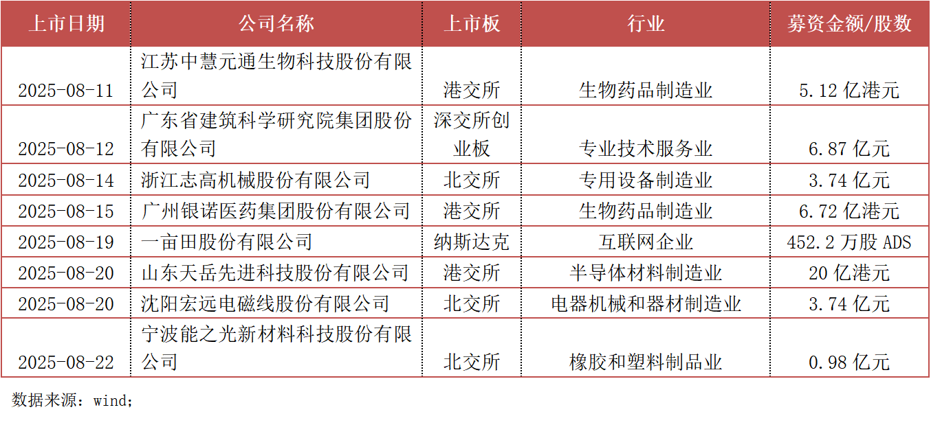 前两周,共有8家企业上市,其中深交所创业板1家、港交所3家、北交所3家、纳斯达克1家。