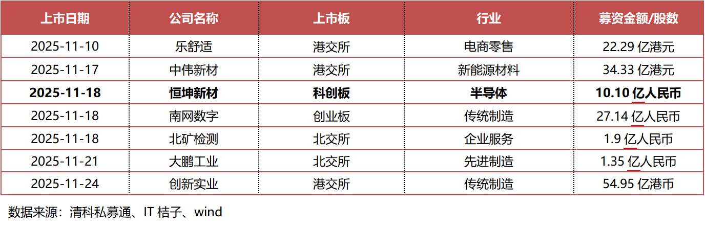 上两周,共有7家企业上市,其中上交所科创板1家、深交所创业板1家、北交所2家、港交所3家。