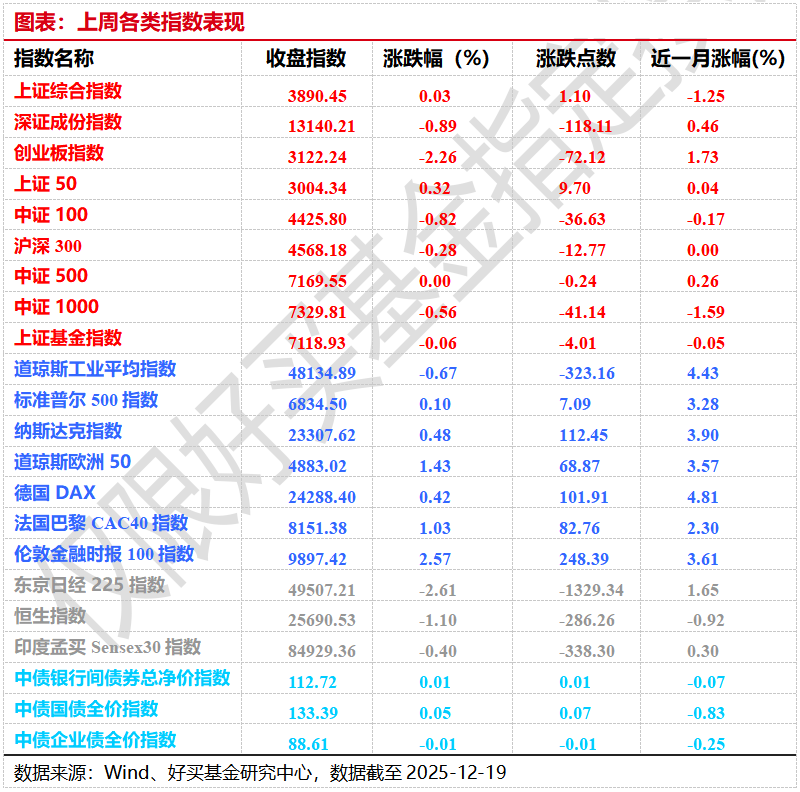 上周,美股周内波动较大,市场一方面对于美联储明年的降息预期有所反复,有美联储官员表示明年的通胀压力依然较大,另一方面市场在演绎对于AI资产回报率的担忧,甲骨文绩后大跌,OpenAI和亚马逊达成合作协议进一步增加了市场担忧,不过美光释放强劲业绩,引领市场再度上涨。经历了停摆期间CPI数据真空后,美国最新一期CPI数据公布,通胀率大幅下降,超出市场预期,这导致美股美债有了大幅上涨。