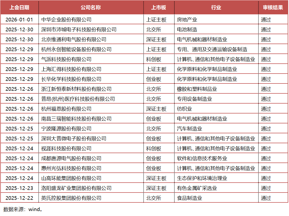 前两周A股共有20家企业上会,19家通过审核,1家暂缓表决。