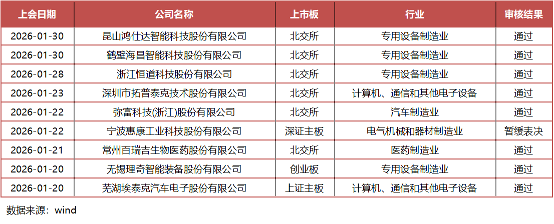前两周共有9家企业上会,其中8家通过审核,1家暂缓表决。